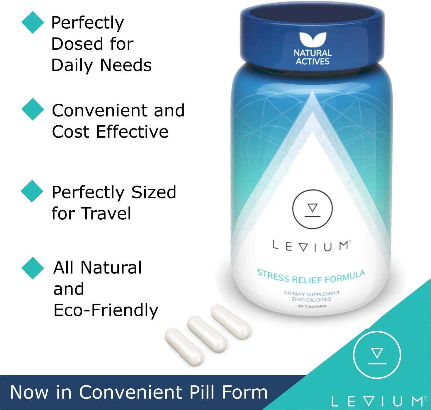 Levium Calming Stress Relief Vitamin Supplement | Natural Mood Boosting Capsules | 90 Count Bottle – 30 Day Supply