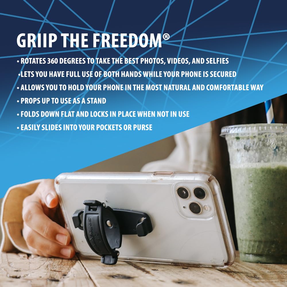 Mint Bucket Brands SpiiderGriip 360 Rotating Phone Grip – Flat-Fold Kickstand & Secure Strap – Works with iPhone, Android, Tablets & Cases – Comfortable & Durable