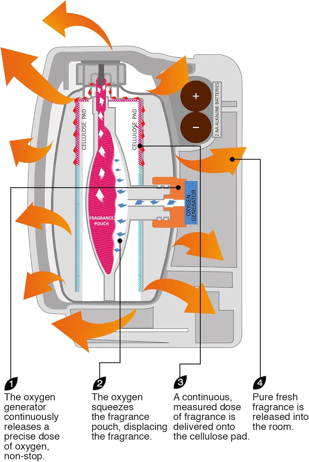 - Economical: The Grande Cartridge works for 60 days, and is the ideal choice to replace aerosols, gels and sprays, with up to four times more fragrance than standard aerosol.