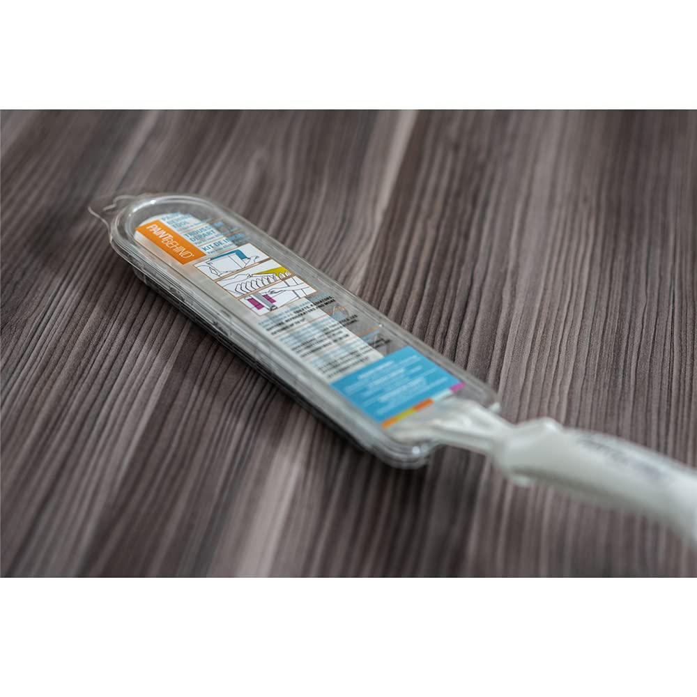 Easily Paint Behind Hard-to-Reach Areas In need of a simple solution for painting in narrow spaces? Check out Paint Behind. It’s a revolutionary new tool that helps you easily paint behind fixtures and appliances that have been installed close to walls. No more blank canvases — Paint Behind is here! The Paint Behind tool includes one removable paint pad and a transparent paint tray. The tray has a perforated tab at the top, making it easy to hang the product in wall-mounted displays. Benefits of Paint Behind® • Easy to use • Includes a strong, reusable applicator • Applies paint smoothly • Is an affordable option for painting in hard-to-reach areas • Contains simple-to-use, slide-on replacement pads Full Details Includes: One applicator handle, one paint pad, and one disposable paint tray Care: Hand wash paint pads with water for latex-based paints or mineral spirits for oil-based paints Perfect for painting behind hard-to-reach areas Great for painting behind toilets, radiators, refrigerators, gutters, stoves, large furniture, TVs, cabinets and more Helps you easily paint behind fixtures and appliances that have been installed close to walls. Extends reach up to 12" Specifications Brand Name: Paint Behind Product Type: Painter's Tool Kit Brand Name: Paint Behind Dimensions: 16.63" x 4.5" x 3" Handle Length: 5-1/2 in. Materials: Plastic & nylon Number in Package: 1 pk Paint Behind Starter Kit includes: • 1 Applicator • 1 Paint Tray • 1 Paint Pads