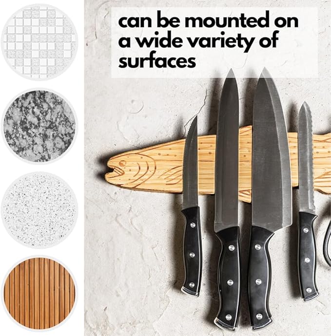 Premium Mangetic Knife Holder for Wall - Strong Heavy-Duty 16" Engraved Magnet for Knives - Wall or Refrigerator Kitchen Magnetic Knife Stripe - Designed in U.S. (Trout)