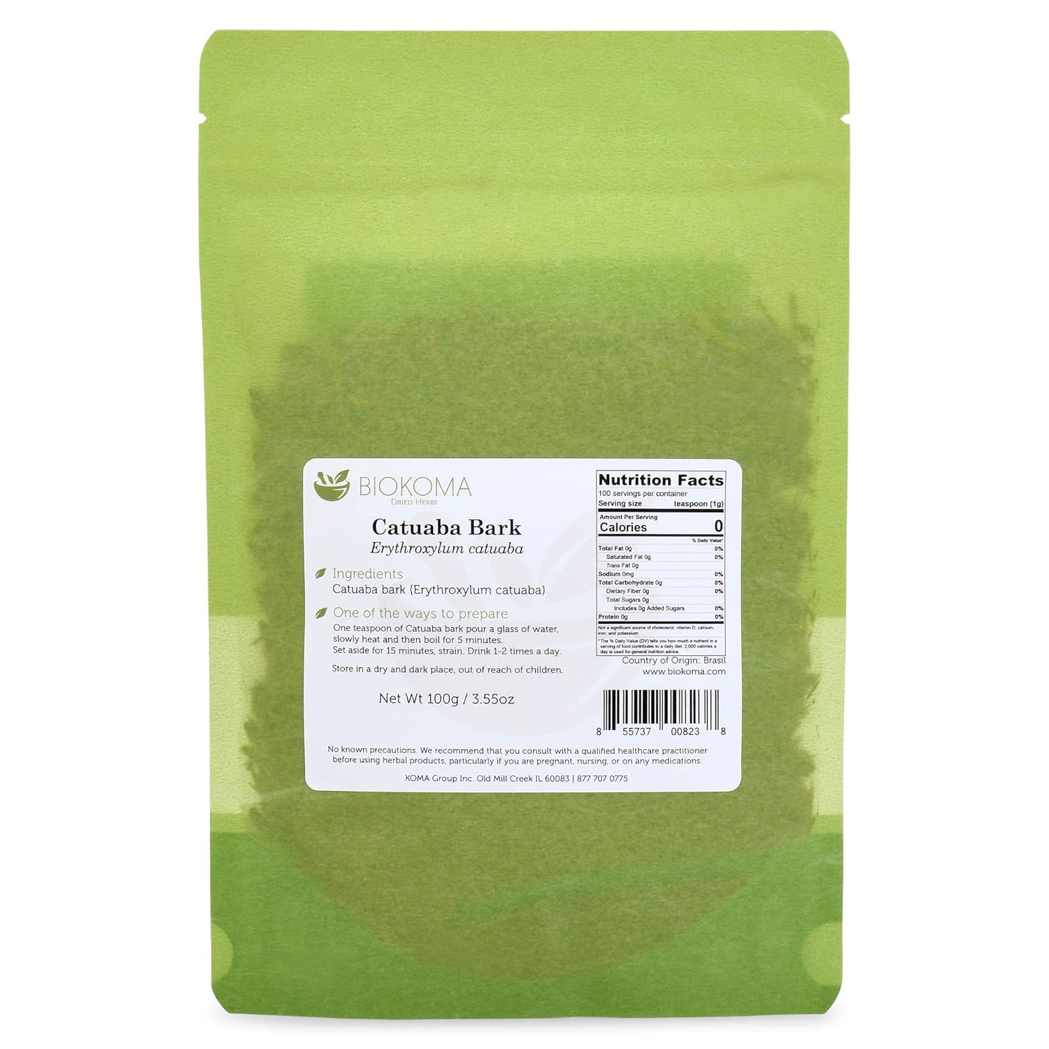 Pure and Natural Biokoma Catuaba Bark Dried Herb - Herbal Tea in Resealable Pack Moisture Proof Pouch 100g - EXP 12/23/2026